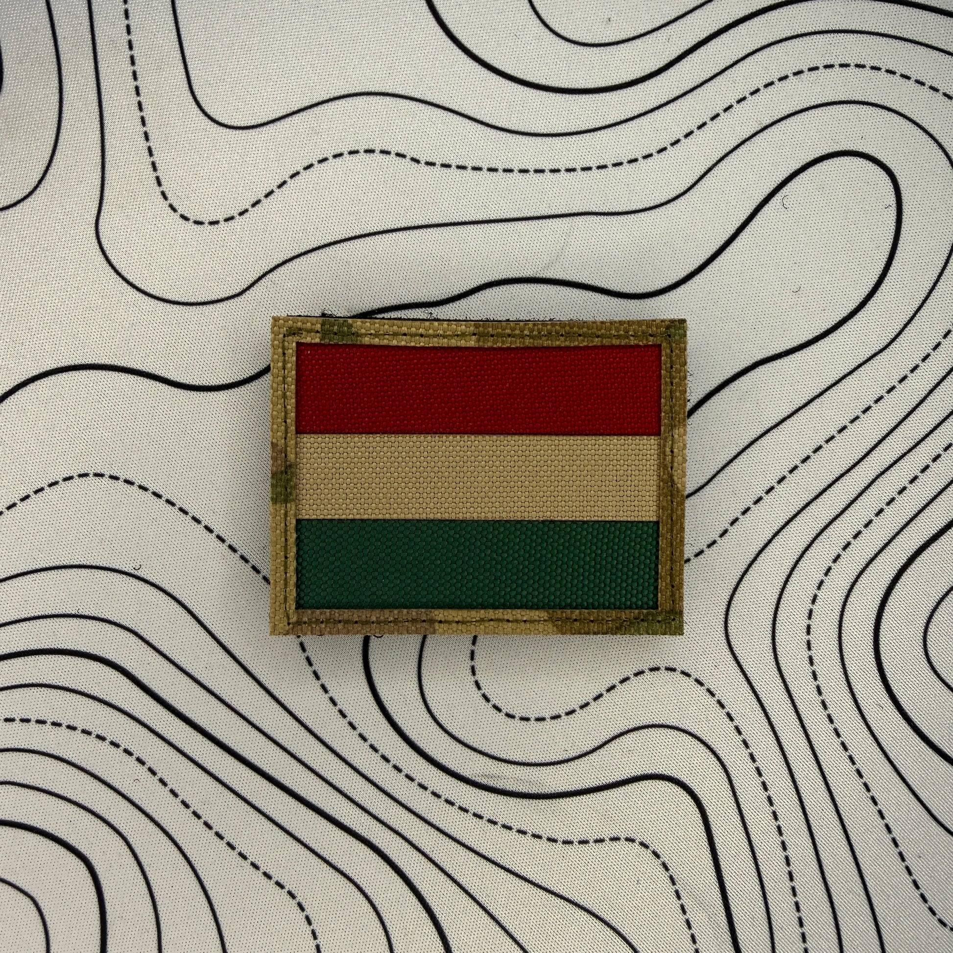 multicam border, green, beige, red fabric custom laser cut patch
