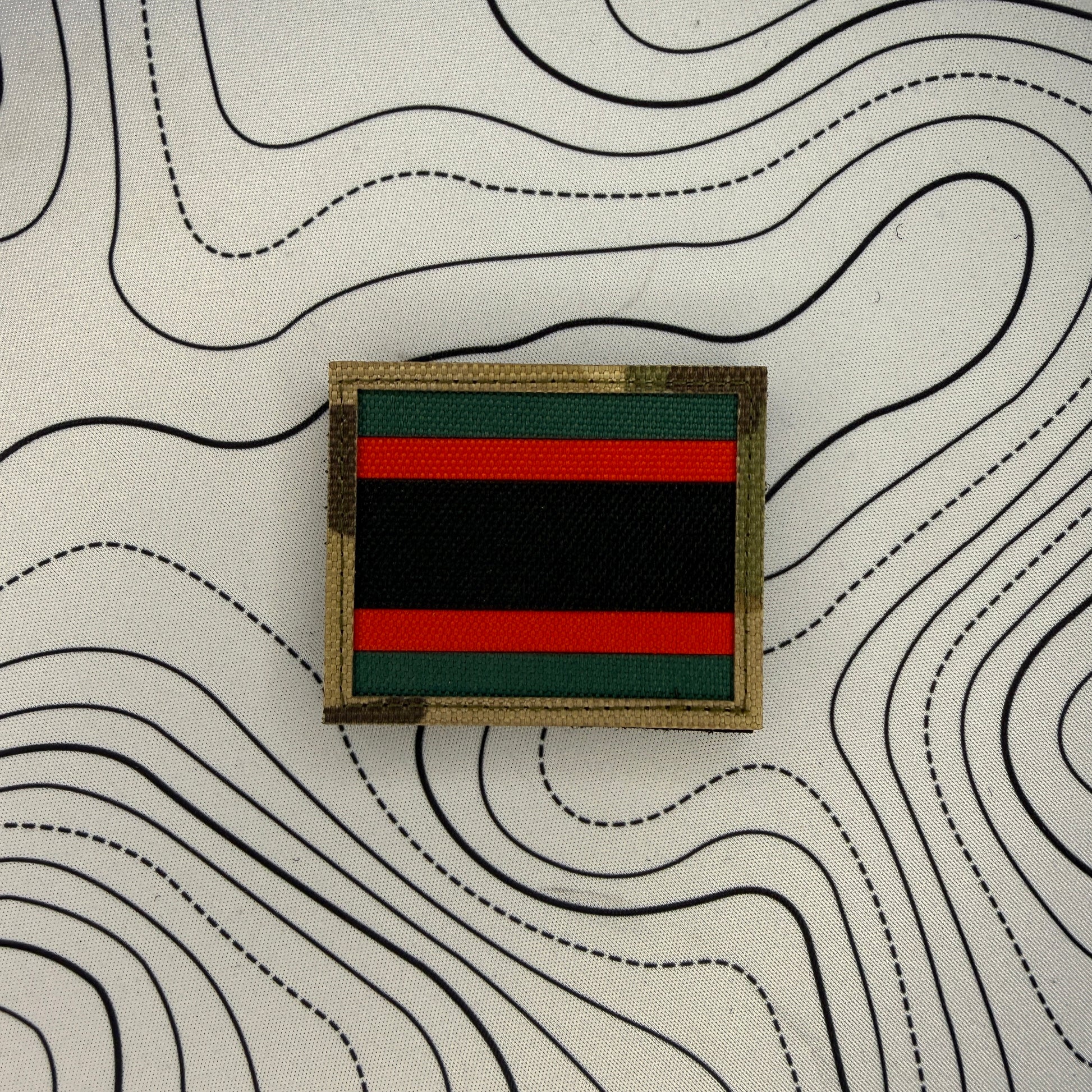 multicam border, Olive green, red fabric and black fabric custom laser cut patch
