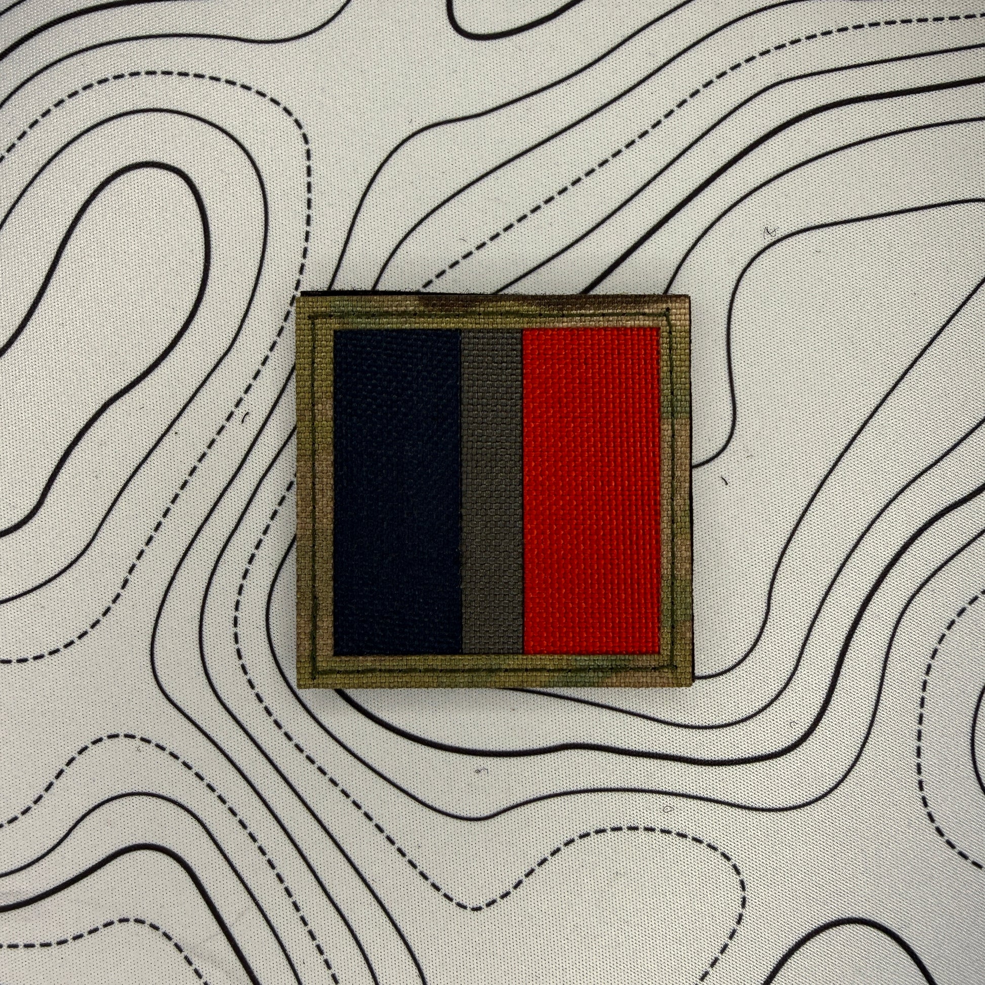 Laser cut multicam with navy, grey and dark red cordura laser cut patch